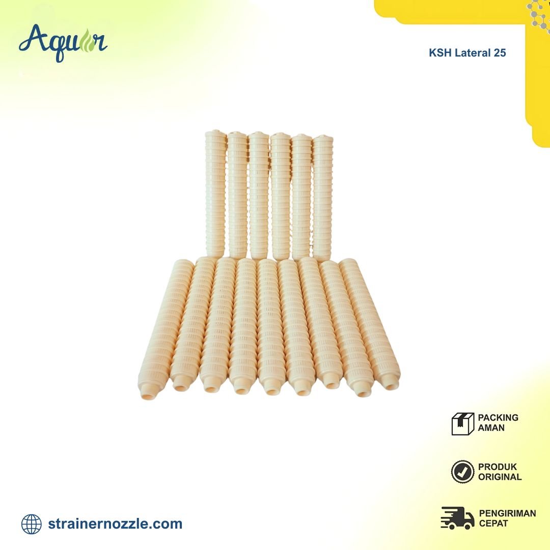 Sebagai bagian penting dari sistem filtrasi, KSH Lateral 25 tidak hanya berfungsi sebagai penyaring, tetapi juga sebagai pengatur aliran yang menjaga kualitas hasil filtrasi tetap konsisten. Produk ini menjadi pilihan tepat bagi Anda yang mengutamakan kualitas, daya tahan, dan efisiensi.